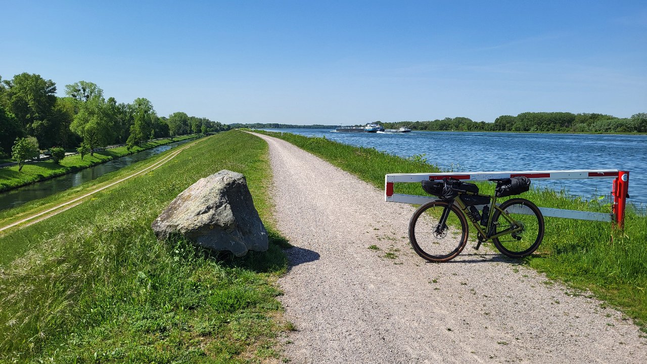 The weather was fantastic and the tour led along the German side of Eurovelo 15 on the Rhine embankment directly alongside the Rhine. Many kilometers on gravel with a constant headwind, but with great views.
